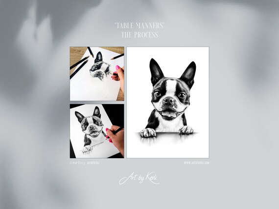 Boston Terrier Pencil Drawing Original Art By Kerli Etsy